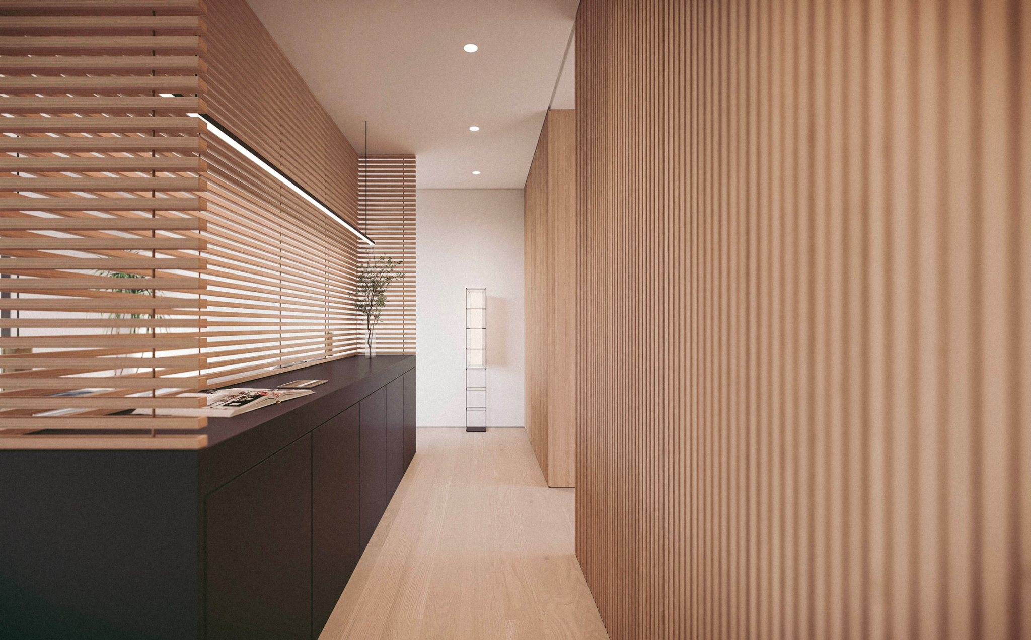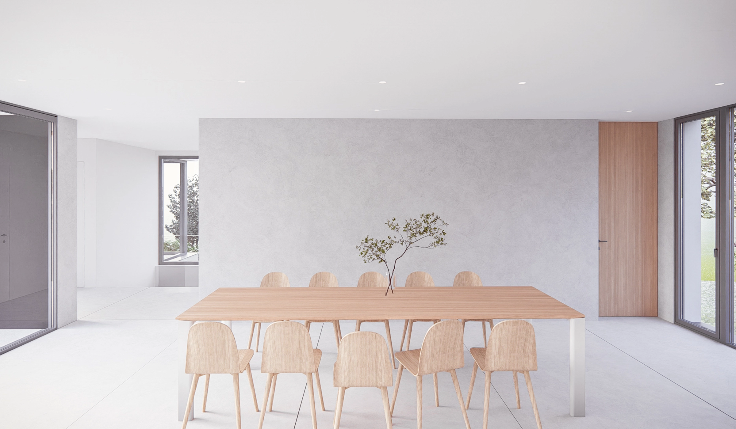 Bien qu’imaginée initialement en bois, cette maison dévoile à l’intérieur une structure soignée en béton apparent. Dans ce cas précis et après plusieurs études, cette solution se révèle plus adaptée au dessin du système porteur délicat tout en permettant l’optimisation des quantités de matériaux nécessaires et du budget.