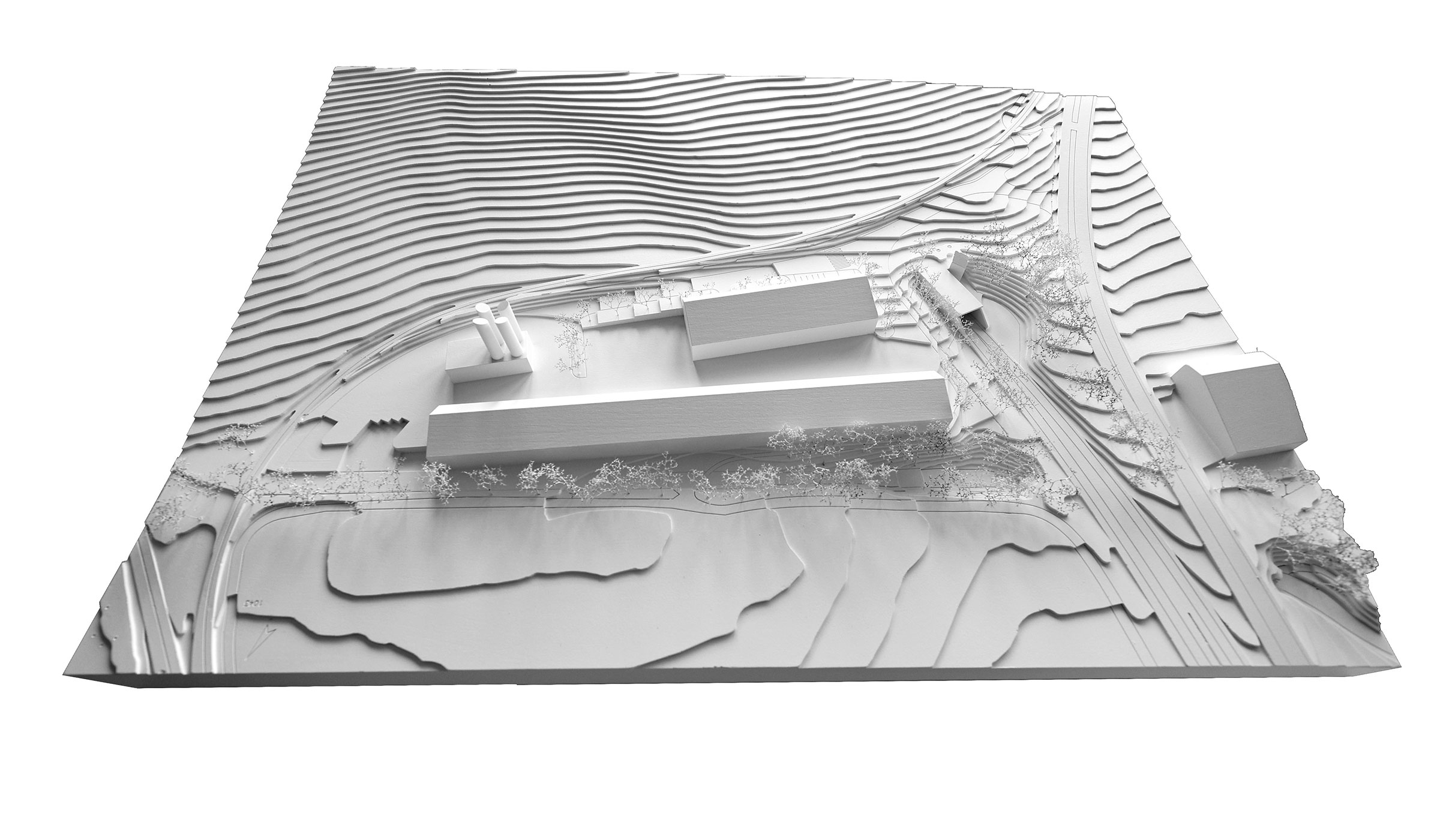 Concours pour le centre d’entretien routier des montagnes Neuchâteloises (CERM). Implanté aux abords de la ville de La Chaux-de-Fonds, ce futur centre regroupe sur un même site les équipements nécessaires à l’entretien des routes cantonales et nationales du haut du canton. Le projet proposé organise sur environ 12’000 m2 de surface de plancher : ateliers de mécaniques, halles de lavage et d’entreposage des véhicules utilitaires, locaux sociaux et centre administratif. Afin de valoriser l’usage du bois local et des chaînes d’approvisionnement courtes, les dalles de cet ensemble sont réalisées à l’aide de rondins de bois.