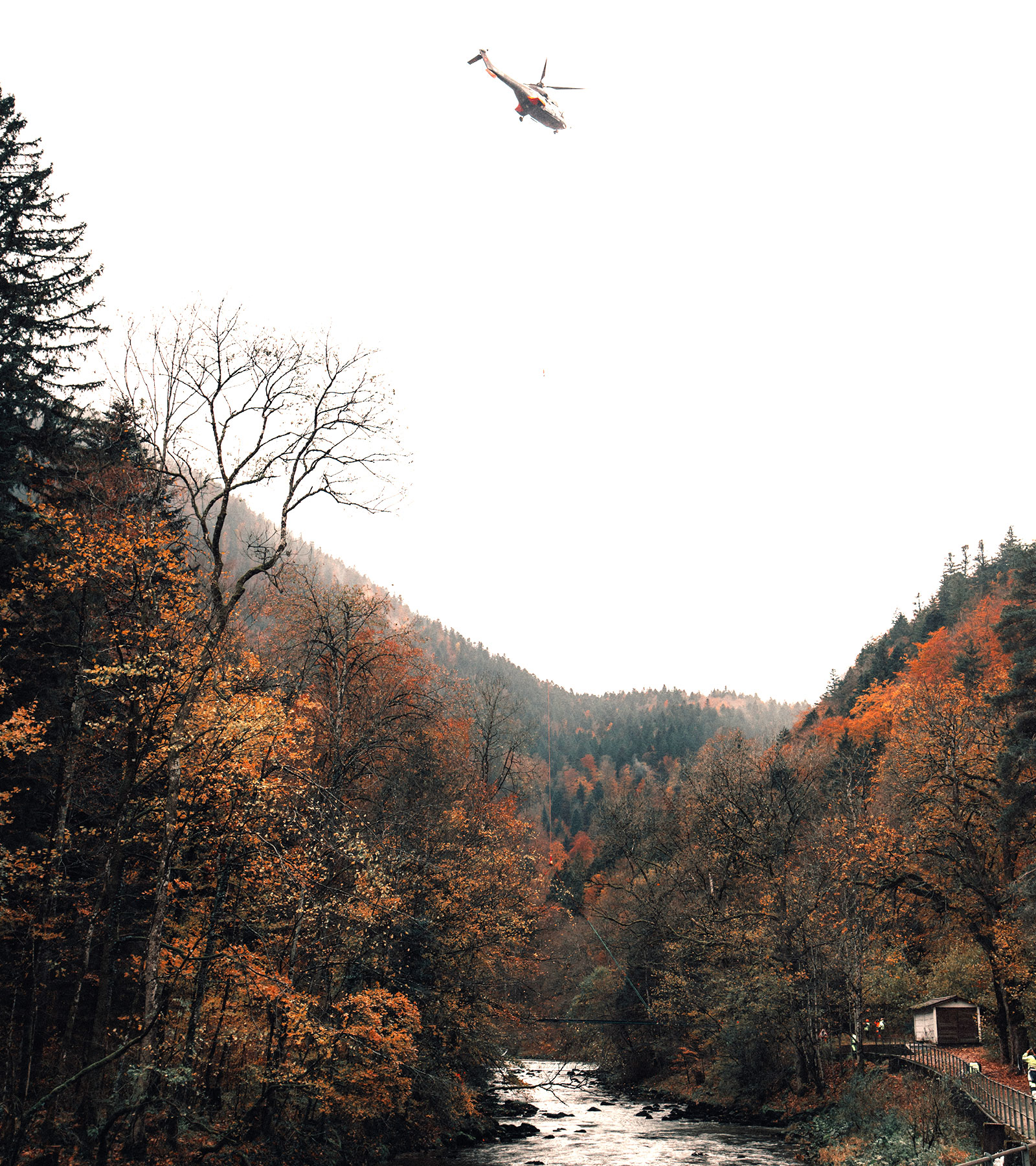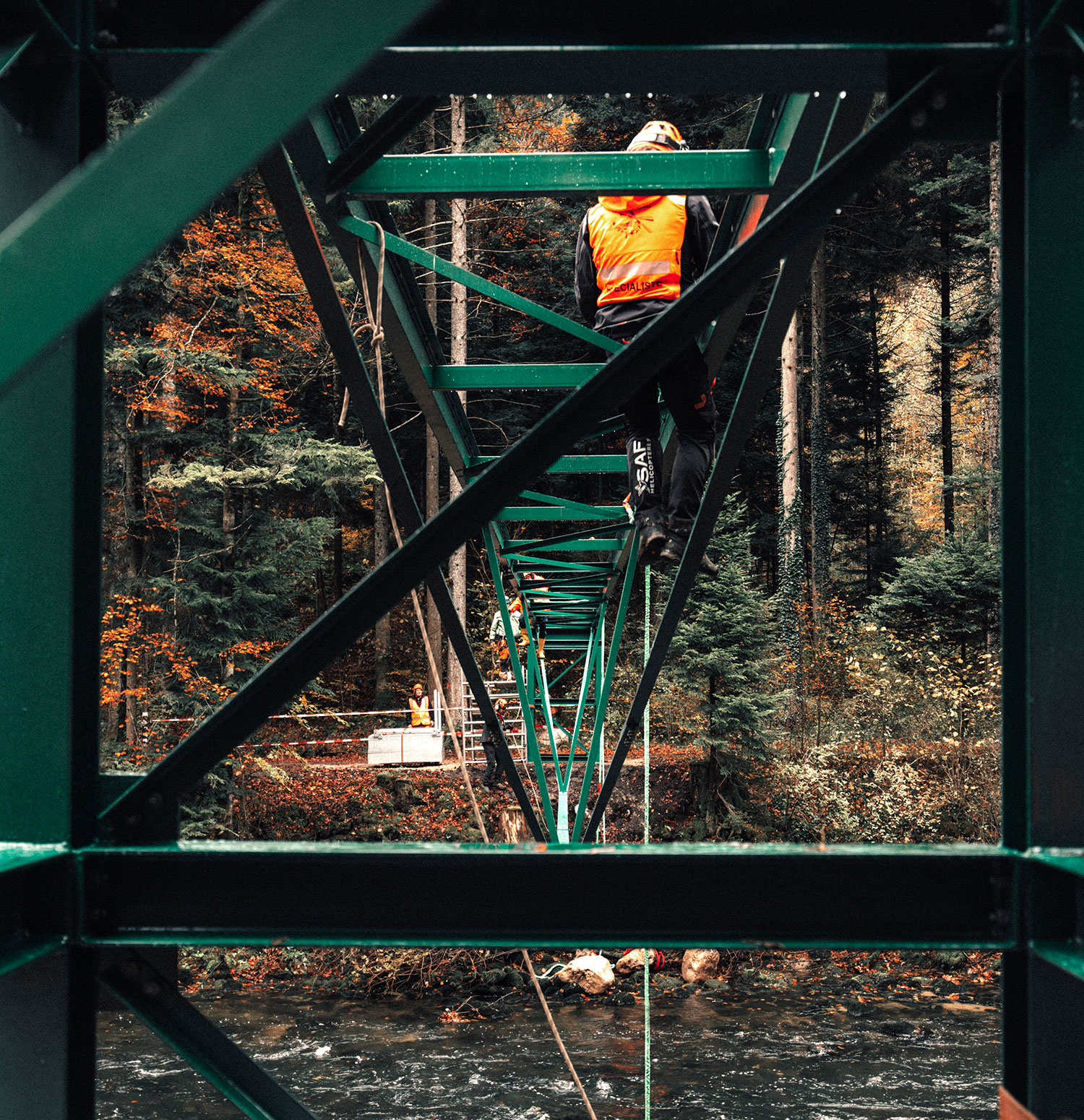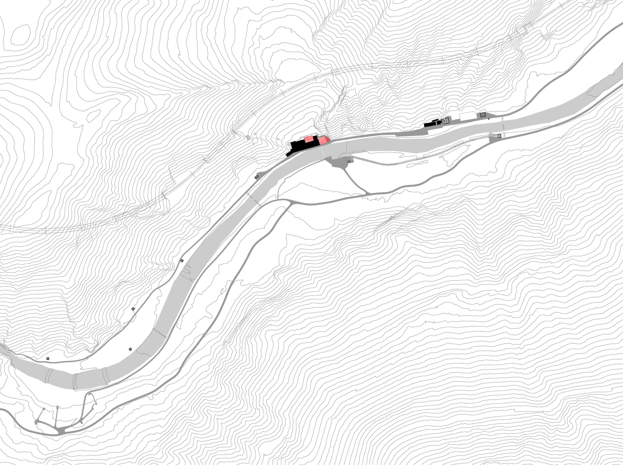 Intervenir sur un site en exploitation rend le chantier particulièrement complexe. Malgré la réfection complète des équipements de traitement et d’adduction, la production d’eau potable doit être assurée de manière continue tout au long des travaux. Parallèlement, les parcours pédestres des Gorges de l’Areuse sont maintenus, ce qui nécessite l’installation de deux passerelles provisoires en amont et en aval de l’usine.