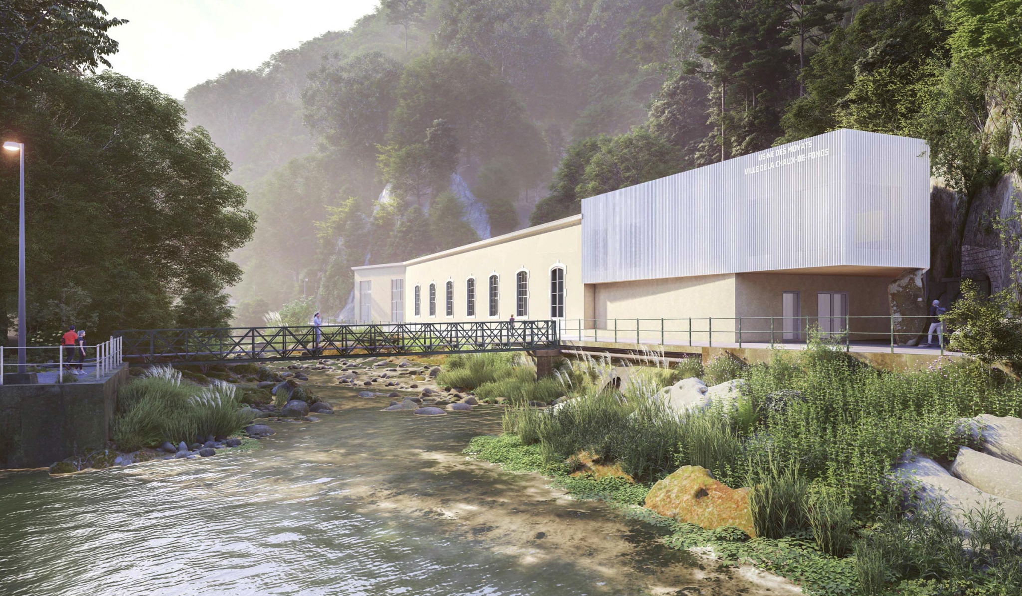 Implantée le long du cours sinueux de l’Areuse et adossée à la paroi rocheuse, l’usine des Moyats assure près de 90 % de l’alimentation en eau potable de la ville de La Chaux-de-Fonds.
